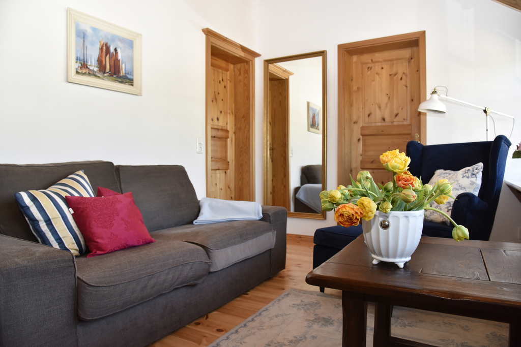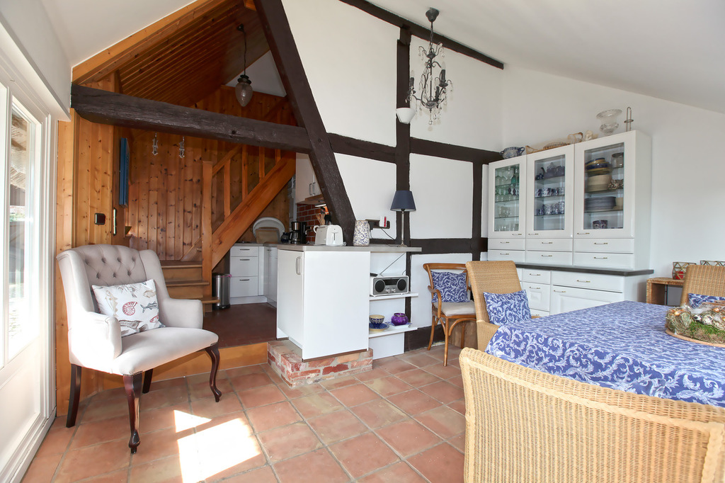Die Ferienwohnung mit gemütlich- romantischer Einrichtung im Fischland- Darss typischen Stil liegt in Erdgeschoss und erster Etage des Fachwerkhauses.