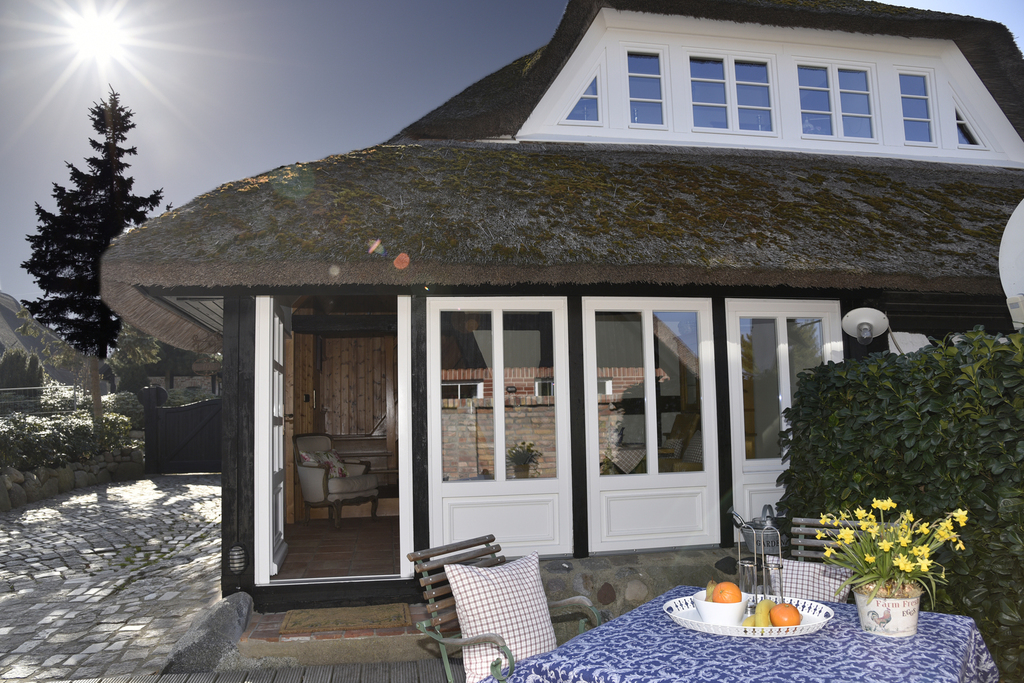 Eine eigene Terrasse bietet Platz zum Grillen oder auch für ein Frühstück in der Sonne. Geniessen Sie Fischland- Darss auf ursprüngliche Weise.