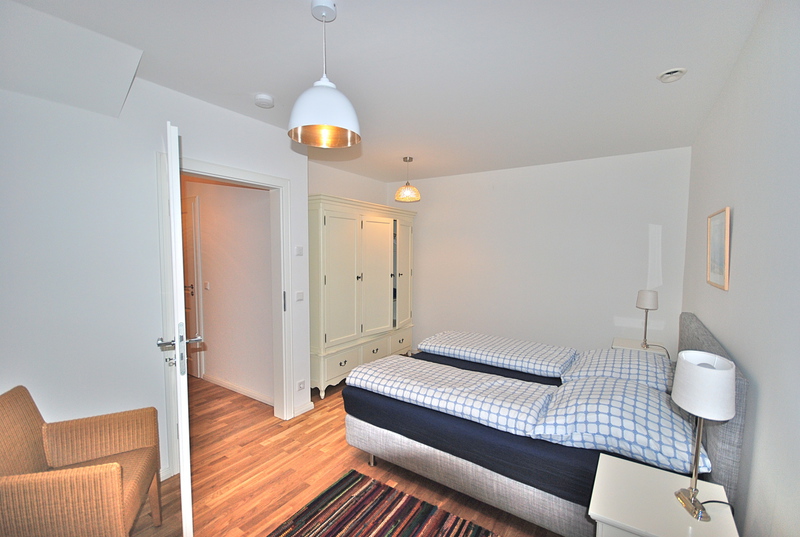 In der 70qm großen Wohnung befinden sich 2 Schlafzimmer (eines im Erdgeschoss, eines im Souterrain, beide mit 1,80m Boxspring Betten ausgestattet). Zu jedem Schlafzimmer gehört ein eigenes, geräumigen Bad (vom Flur betretbar).
